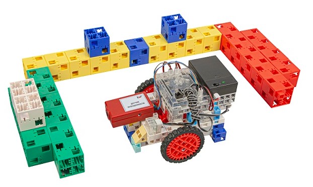 В состав комплекта входит несколько вариантов «Умной среды» для робота — это варианты полигонов, собранные из кубиков. Предполагается, что дети будут программировать робота на выполнение ряда задач для достижения цели. Сам полигон может быть любым, с различными препятствиями и задачами, при этом он тоже программируемый, но задачи по программированию полигона более сложные и могут выполняться разными способам: