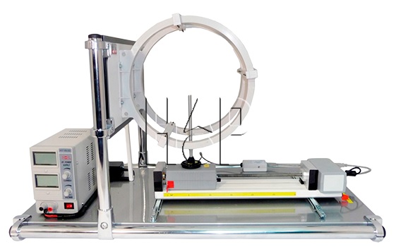 Установка смонтирована на горизонтальном основании, обеспечивающем закрепление всех элементов. Устройство перемещения датчика магнитного поля обеспечивает его перемещение по двум координатам (продольной и радиальной), причем движением датчика в радиальном направлении управляет компьютерная программа сбора и обработки данных. Конструкция датчика магнитного поля позволяет поворачивать чувствительный элемент на 90°, что дает возможность регистрировать как радиальную, так и продольную составляющие магнитного поля в пространстве между катушками Гельмгольца.