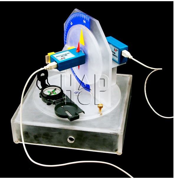 Измерение горизонтальной составляющей магнитного поля осуществляется при повороте оси чувствительности датчика в горизонтальной плоскости (выбор максимального значения индукции и фиксация горизонтальной платформы). После этого датчик магнитного поля поворачивается в вертикальной плоскости и измеряется угловая координата оси чувствительности датчика и соответствующее ей значение модуля магнитной индукции. Максимальные показания датчика магнитного поля возникают при совпадении угла наклона его оси чувствительности с углом магнитного наклонения.