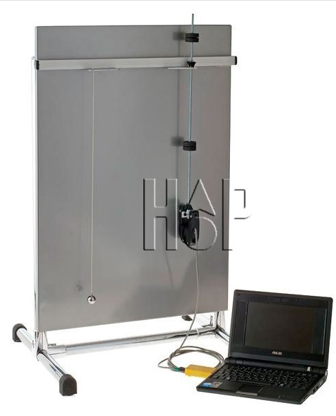В верхней части стенда имеются две пластины, одна из которых является опорной для призмы оборотного маятника, а другая имеет отверстие для фиксации нити. Маятники совершают колебания в плоскости, параллельной плоскости металлического стенда. Оптоэлектрический датчик, с помощью вмонтированных в него магнитов, фиксируется на металлическом стенде таким образом, чтобы маятник при колебаниях пересекал его оптическую ось. Показания оптоэлектрического датчика выводятся на экран компьютера в виде диаграммы, показывающей изменение состояния датчика (открыт/перекрыт) от времени.