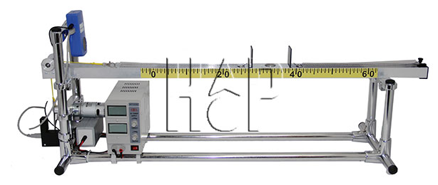 Тележка, которая может двигаться вдоль направляющей с малым трением (на магнитной подвеске), находится между двумя пружинами, одна из которых закреплена на направляющей, а вторая растягивается нитью, закрепленной на вращаемом двигателем диске на некотором расстоянии от его центра. В комплект входит 2 тележки, сильно отличающиеся по сопротивлению движению. Изменение частоты вынуждающей силы происходит при уменьшении или увеличении частоты вращения двигателя, которая контролируется с помощью оптоэлектрического датчика.