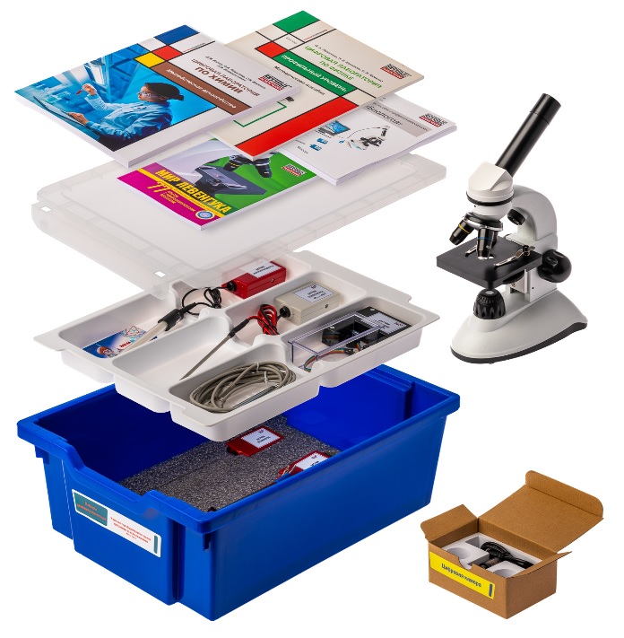 Набор представляет собой образовательный комплект, состоящий из цифровой лаборатории по естествознанию и набора проведения опытов с микроскопом, для демонстрации и проведения экспериментов по естествознанию