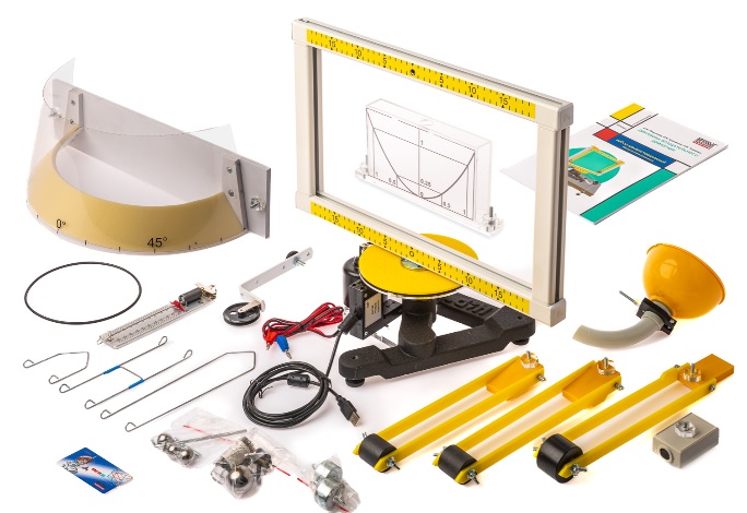 Набор демонстрационный позволяет выполнить 10 опытов по вращательному и колебательному движениям, инерциальным системам отсчета, центростремительному ускорению, вращению твердого тела с постоянным ускорением, а также провести расчетное моделирование поведения жидкости во вращающемся сосуде