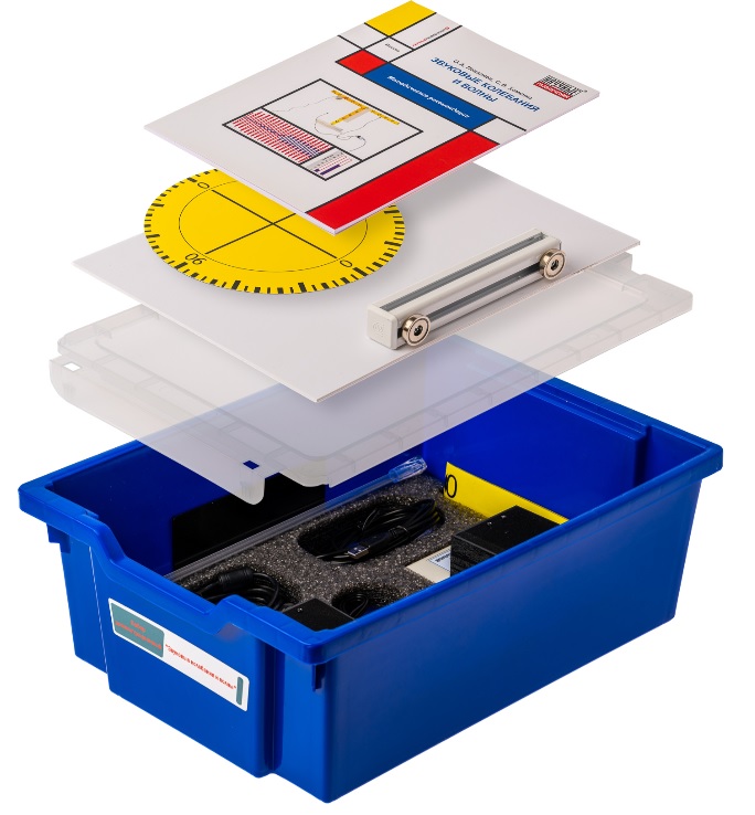 Набор демонстрационный предназначен для демонстрации основных понятий и закономерностей волновых процессов, изучения распространения и отражения продольных упругих волн, знакомства с такими явлениями как интерференция и дифракция, акустический резонанс и биения звуковых колебаний