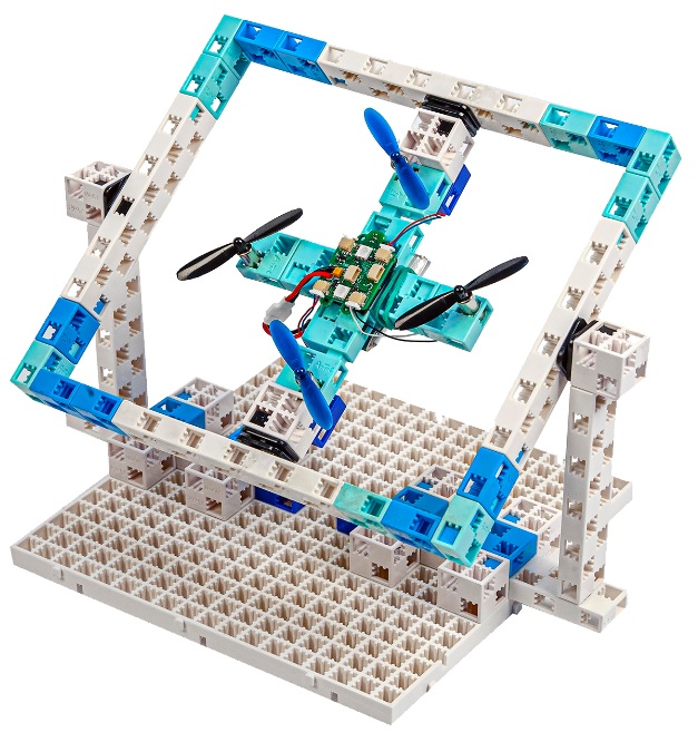 Образовательный модуль «Квадрокоптер» даёт педагогу и ученикам возможность провести лабораторные работы и создать исследовательские проекты: собрать из кубиков модель дрона, а после экспериментировать с ним – программировать, делать балансировку, запускать и планировать траекторию его полетов.