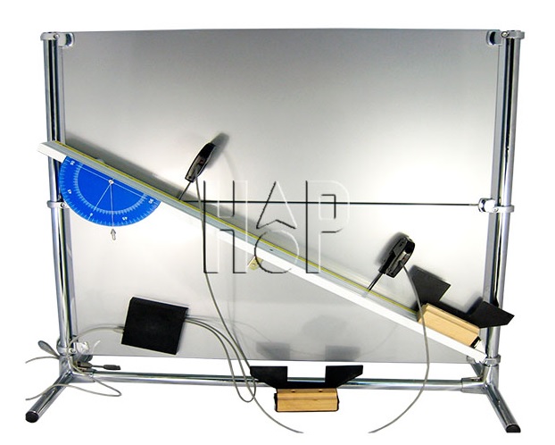 Основным элементом установки является скамья, магнитное крепление которой позволяет устанавливать её под любым углом к горизонту. Скамья имеет шкалу для определения положения датчиков и транспортир с отвесом для измерения угла наклона.