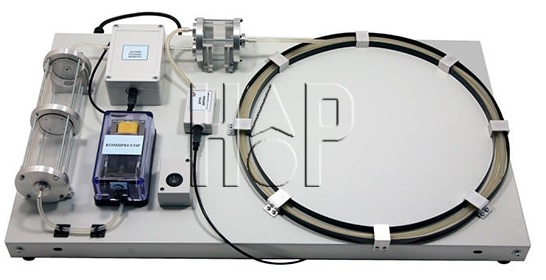 Лабораторная установка выполнена в виде настольного стенда, на котором смонтированы все элементы установки и соединяющие их трубопроводы. Перепад давления на трубке малого сечения измеряется с помощью дифференциального датчика давления, один из штуцеров которого соединен с воздушной камерой, а другой – с атмосферой. Изменение расхода воздуха осуществляется регулятором на воздушном компрессоре и контролируется с помощью цифрового датчика расхода газа.