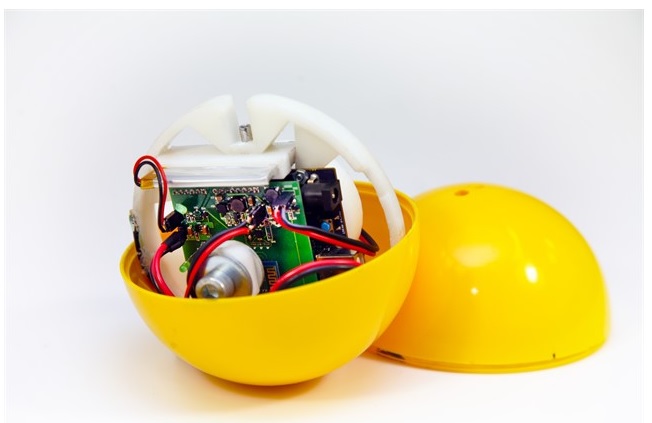 Корпус устройства в собранном виде представляет собой сферу, внутри которой размещается рама с установленными на ней платой микроконтроллера, платой расширения, аккумулятором и системой бесконтактного включения.