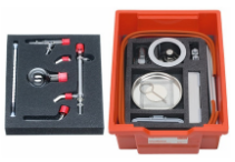 В комплекте (для 1 рабочей группы или для демонстрации)*: колба, мензурка, холодильник Либиха, термометр, держатели, штатив, спиртовка, резиновые трубки, аксессуары.