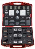 В наборе (для 6 рабочих групп)*: источник света с элементами питания, универсальное зеркало сложной формы, платформа-основание, экран белый со шкалом 0-3 см, призма треугольная равносторонняя, набор цветных фильтров (красный, синий, зеленый), набор оптических тел (двояковыпуклая и двояковогнутая линзы, треугльные призмы, параллелепипед, полуцилиндр).