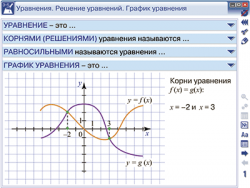Отличительной особенностью интерактивного учебного пособия «Уравнения и неравенства» является создание собственной тематической последовательности курса с возможностью включить дополнительные медиаобъекты в структуру самого пособия.