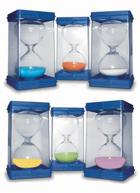 Комплект песочных часов, больших (В прозрачном пластиковом футляре размером не менее 140х75х75 мм располагаются стеклянные песочные часы. На одной из крышек написан период, отсчитываемый часами за один поворот. Отсчитываемые периоды не менее 30 секунд , 1, 3, 5, 10 и 15 минут.).