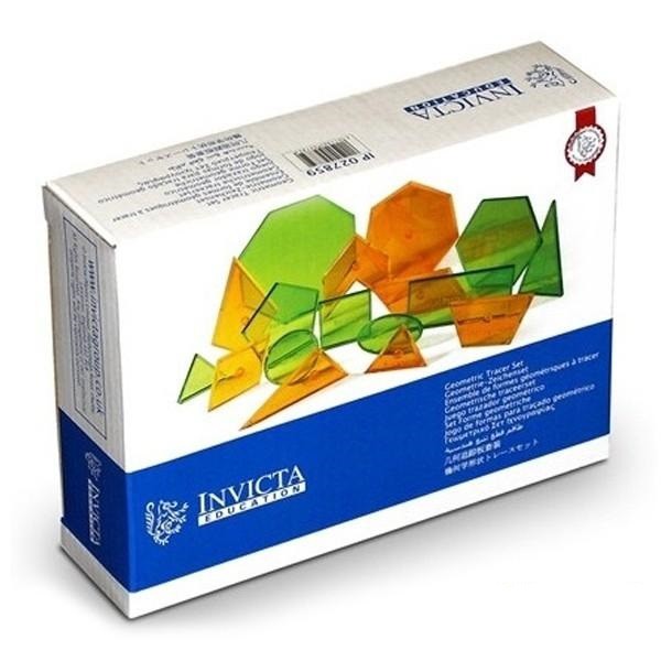 Набор включает в себя 17 разновидностей геометрических фигур – квадраты, треугольники, прямоугольники, ромб, трапеции, эллипс, круг и др. Можно обводить фигуры, делая двухмерные чертежи, или объединять их в трехмерные модели, составлять орнаменты, мандалы.