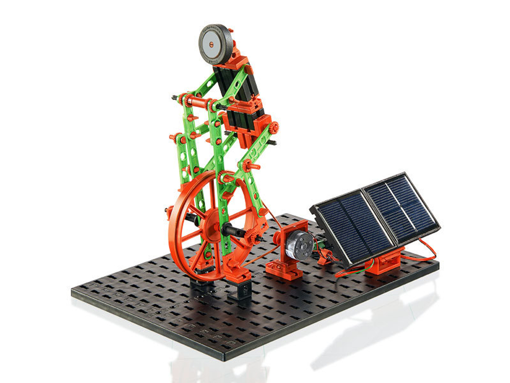 Конструкторский набор для средней школы предназначен для изучения принципов работы возобновляемых источников энергии. В ходе экспериментов на основе различных действующих моделей изучаются процессы извлечения, хранения и использования электроэнергии из природных источников: энергии воды, ветра и солнца.