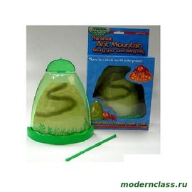 Под прозрачным пластмассовым куполом находится особый материал – среда обитания и жизнедеятельности муравьев. Муравьиная «колония» запускается через отверстие в куполе. На этой «муравьиной ферме» насекомые могут долгие годы питаться, жить и размножаться.