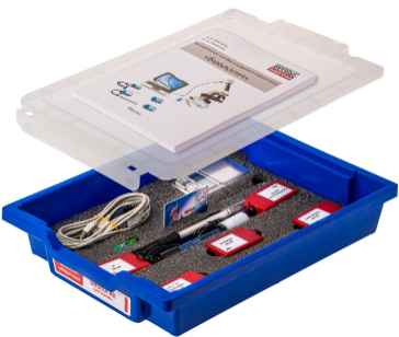 Цифровая лаборатория (за исключением микроскопа и цифровой видеокамеры) укомплектована в пластиковую систему хранения, которая закрывается прозрачной пластиковой крышкой на защелках для обеспечения наблюдения за содержимым. Комплект оборудования и датчики в системе хранения располагаются на ложементе. Микроскоп и цифровая видеокамера имеют отдельные упаковки.