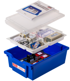 Цифровая лаборатория укомплектована в пластиковую систему хранения, которая закрывается прозрачной пластиковой крышкой на защелках для обеспечения наблюдения за содержимым. Комплект оборудования и датчики в контейнере располагаются на ложементах.