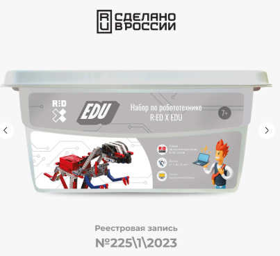 Комплекс образовательных инструментов для учащихся 1-6 класса, разработанный с учетом особенностей возраста, включающий робототехнический набор R:ED X и программное обеспечение R:ED CODE для прошивки контроллера, с возможностью программирования в 2-х средах программирования , а так же с дополнительными элементами для участия в фестивалях и соревнованиях. Подходят в проекты: Национальный проект "Образование": Проекты: «Точка роста», «Детский технопарк «Кванториум», «Новые места в общеобразовательных организациях», «Центр цифрового образования детей «IT-куб» Государственная программа Российской Федерации «Развитие образования»: Приказ Министерства просвещения РФ № 804 Контроллер R:ED X х 1 32bit микроконтроллер Напряжение: 5В - 12В Количество цифровых портов: 10 Количество аналоговых портов: 10 Порты для управления моторами постоянного тока: 4 Количество светодиодов: 4 Программируемый джойстик, состоящий из 5 кнопок Флэш-память: 512 Кб ОЗУ: 64 Кб Интерфейс USART: 1 Интерфейс USB Type C Интерфейс I2C: 1 Интерфейс SPI: 1 Дополнительно Мотор R:ED X x 2 Сервомотор R:ED X x 2 RGB Светодиод x 1 Пассивный зуммер x 1 Ультразвуковой датчик x 1 Датчик нажатия x 2 Инфракрасный датчик (D) x 2 Инфракрасный датчик (А) x 2 Датчик цвета x 1 Кабель Type C x 1 Провод 3 pin, F-F, XH, 30см x 5 Провод 3 pin, F-F, XH-Dupont, 30см x 2 Провод 1 pin, F-F, 30см x 25 Соединительные элементы и блоки для крепления x 777 Пластиковые щипцы х1 Контейнер x 1 Wi-Fi/Bluetooth модуль x 1 Акселерометр x 1 Дополнительная плата-расширение x 1 Органайзер для хранения деталей х 3