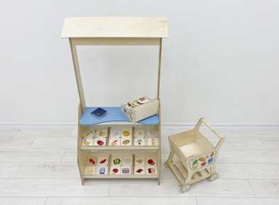 Дидактические игры: детский киоск АЛМА «Магазин» с кассой, тележкой и продуктами. Макеты денег и пластиковые карты, копилки, кошельки, наборы для групповых игр по усвоению навыков финансовой грамотности на практике.