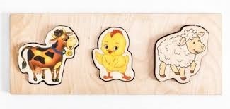 Дидактическое пособие из дерева, состоящее из доски-основы и 3 вкладышей по теме "Животные фермы" для самых маленьких. Под съемными элементами тактильная поверхность, соответствующая объекту.