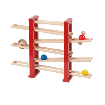 Развивающая динамическая игра представляет собой специальную конструкцию с несколькими дорожками-желобками, расположенными друг под другом. Установив шарик в верхнем желобке можно пронаблюдать, как он скатывается вниз, падая с уровня на уровень, пока не докатится до самого низа. Можно запустить сразу несколько шаров. Игра улучшает координацию глаза-рука, навыки визуального слежения, а также способствует раннему пониманию закона всемирного тяготения. Кугельбан выполнен из бука. В комплекте два цветных деревянных шара диаметром 3 см, диск диаметром 7 см и деревянная шар-птичка диаметром 7,5 см.