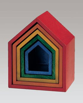 Набор домиков из бука, окрашенных в 5 разных цветов. Собираются друг в друга по принципу матрешки.